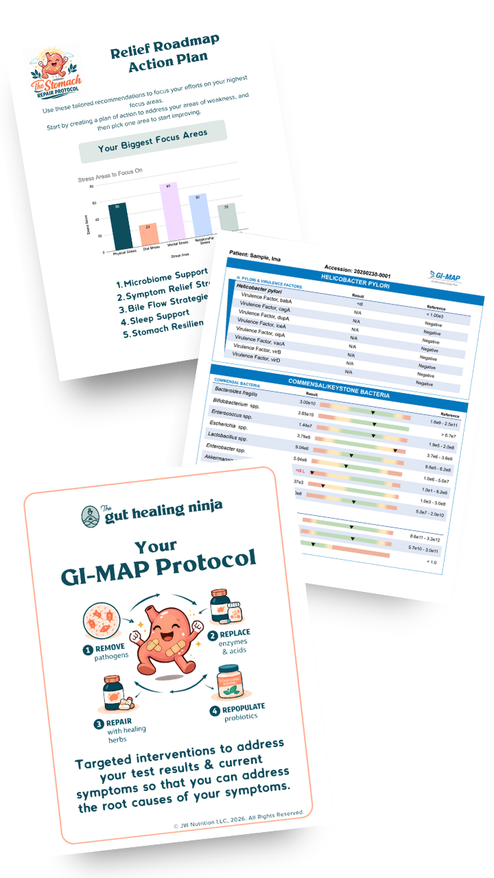 The Stomach Repair Protocol is a personalized GI-MAP investigation and treatment plan designed to uncover the hidden imbalances driving your symptoms and show you exactly how to address them.